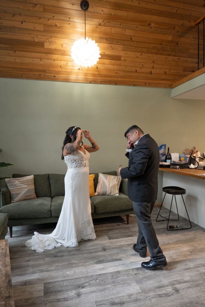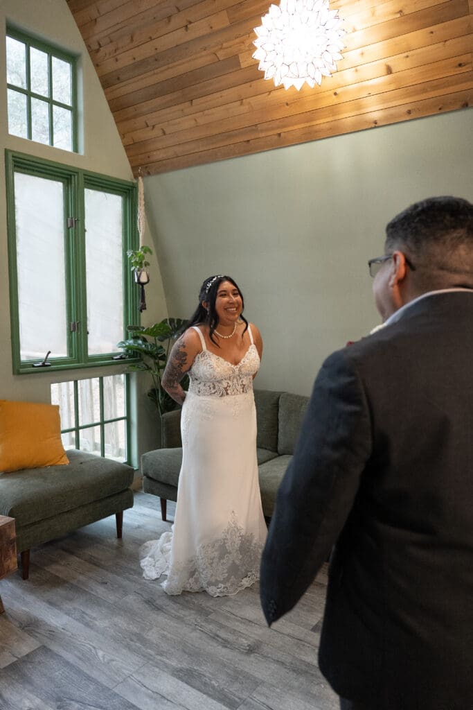 After portraits, Sabas and Breanna stepped away from the celebration for a few minutes. They got drinks when their planner’s thoughtfully brought their signature cocktails during our portraits. They got to retreat to their cabin for awhile to breathe, reset, and simply be together.