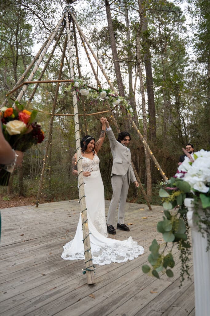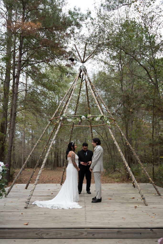 Surrounded by nature and their closest people, Sabas and Breanna exchanged vows in a ceremony that felt grounded and intentional. At The Shire Tipis offers a setting that encourages presence, being tucked away, calm, and removed from distraction in the Huntsville woods.